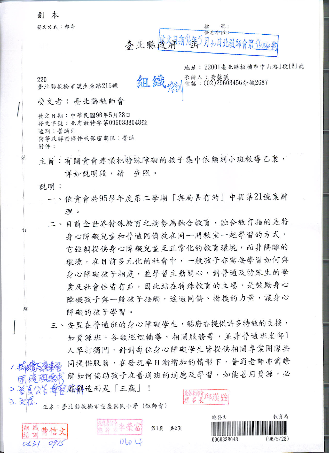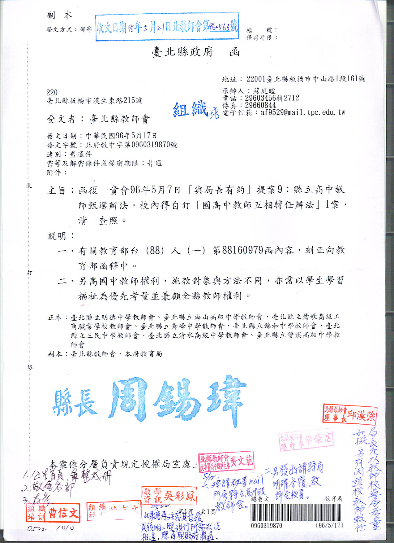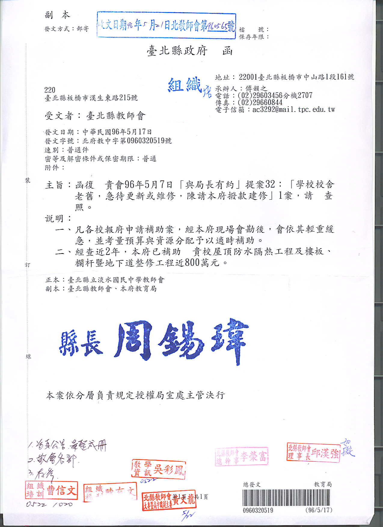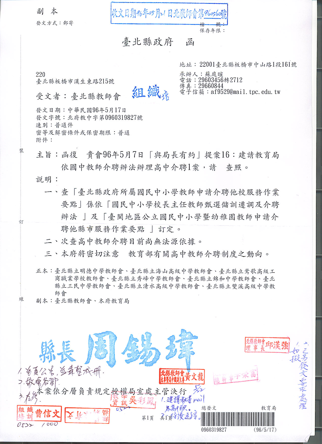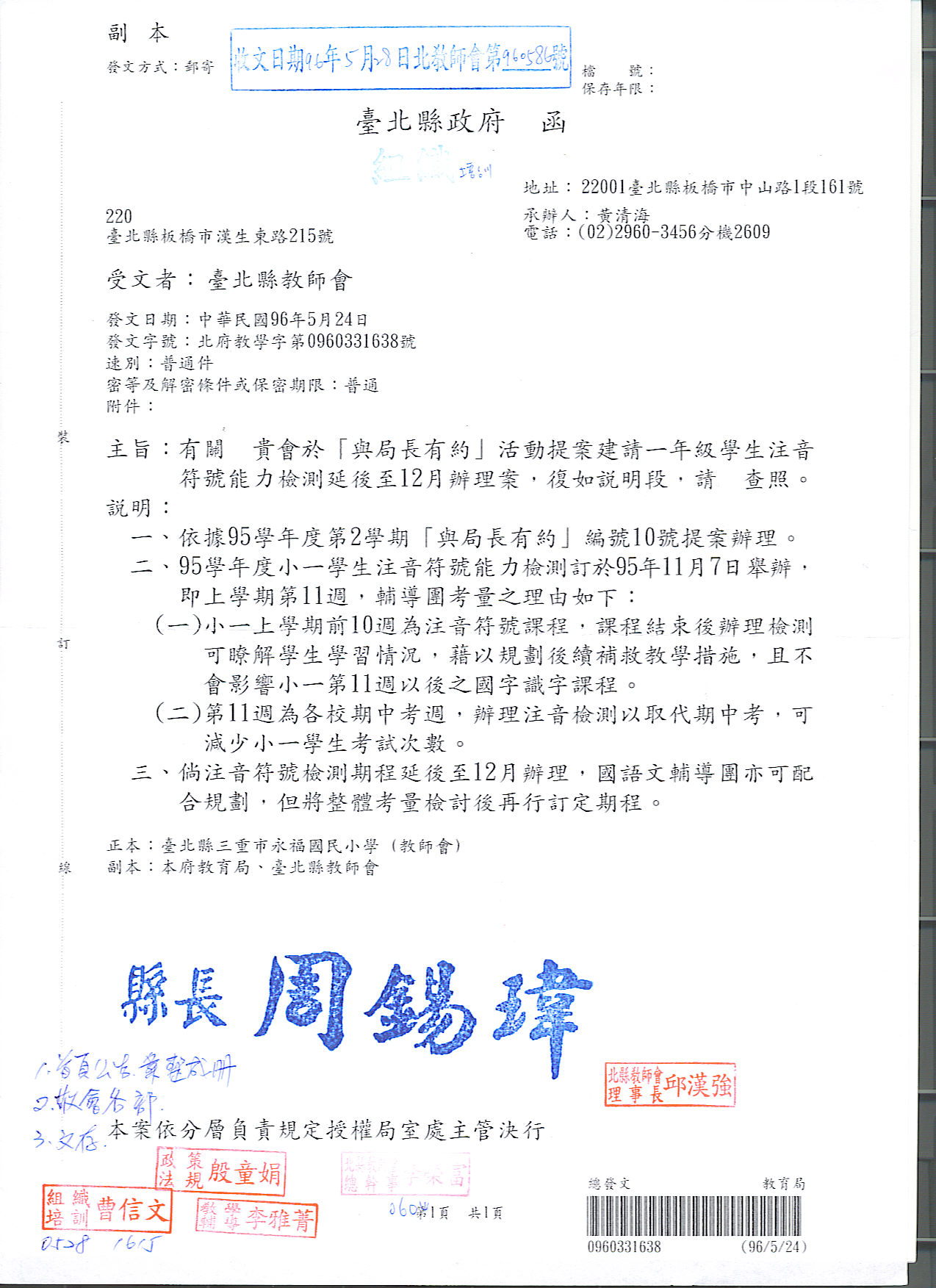 預設 [重要公文]960507與局長有約教育局相關回文