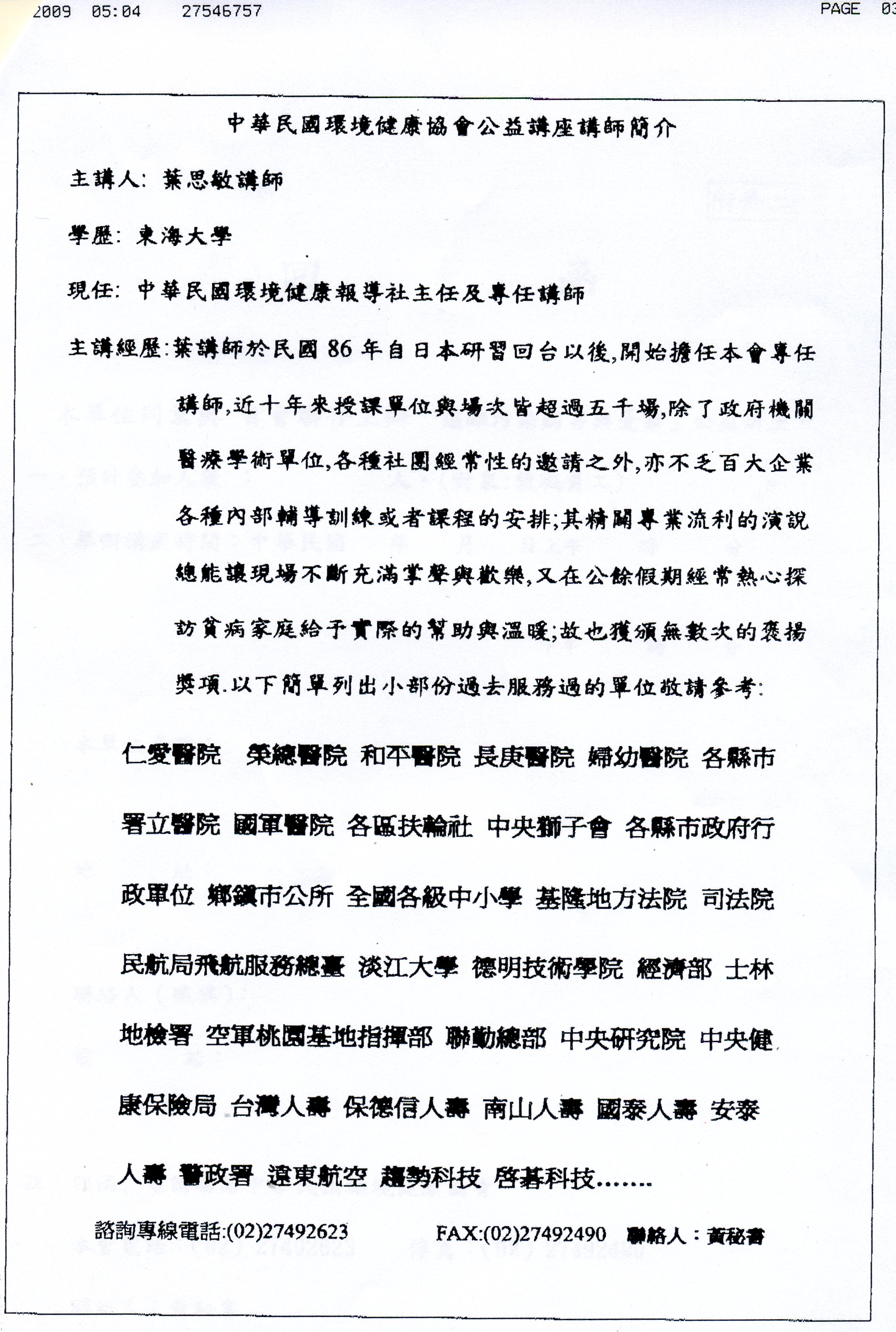 [代轉訊息]轉知中華民國環境健康協會-「遠離污染病害與憂鬱」系列免費公益講座