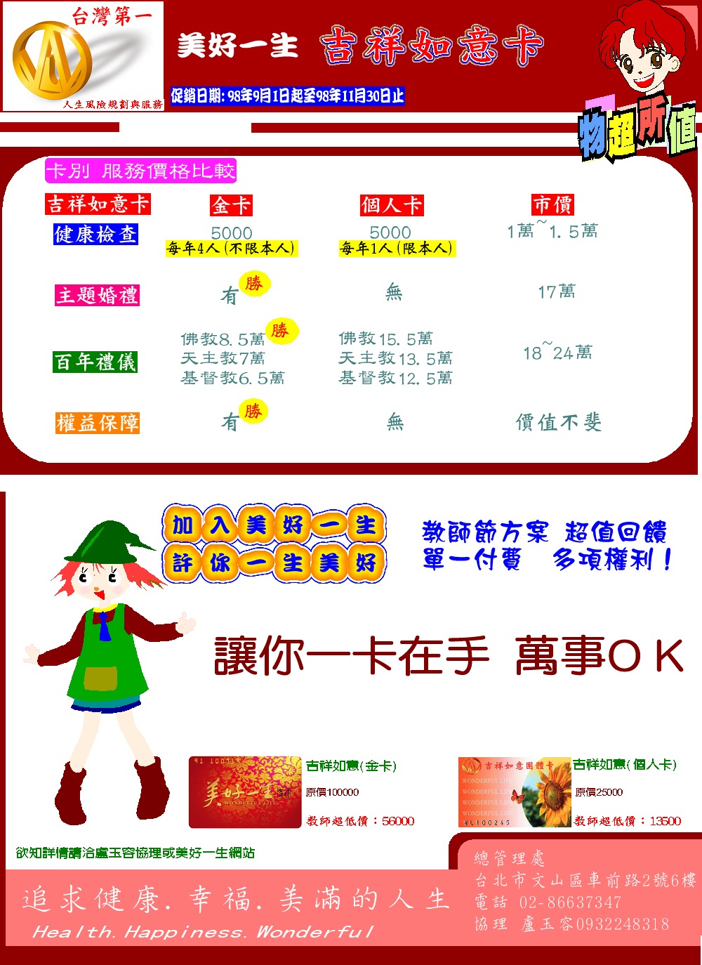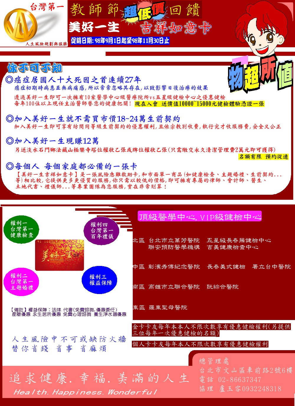[代轉訊息]別讓權益睡著了,美好一生教師節空前大優惠。