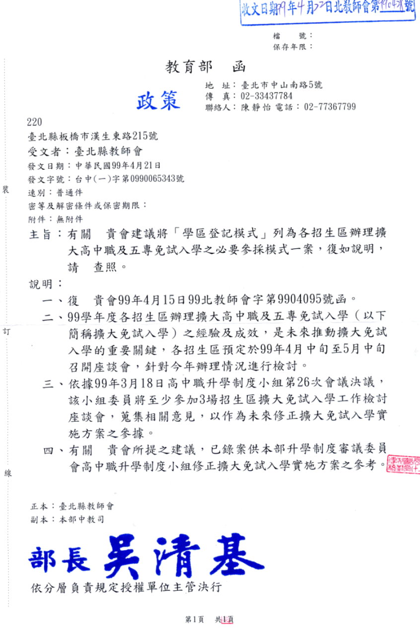教育部函:有關[學區登記模式]列入必要參採模式說明