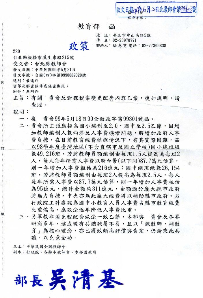 [重要公文]有關全教會反對課稅案變更配套內容一案,教育部說明。