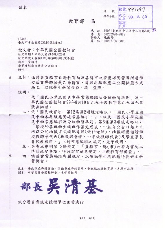 有關「導師抽籤」情事,教育部回函