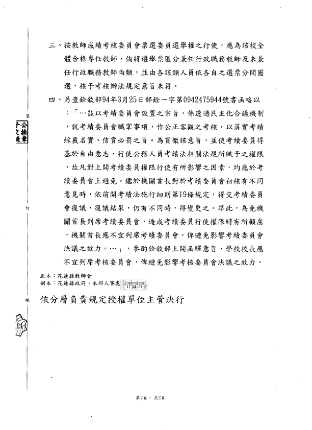 教育部函釋教師成績考核會選舉與校長得否列席會議疑義函