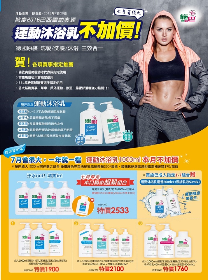 施巴七月運動不加價