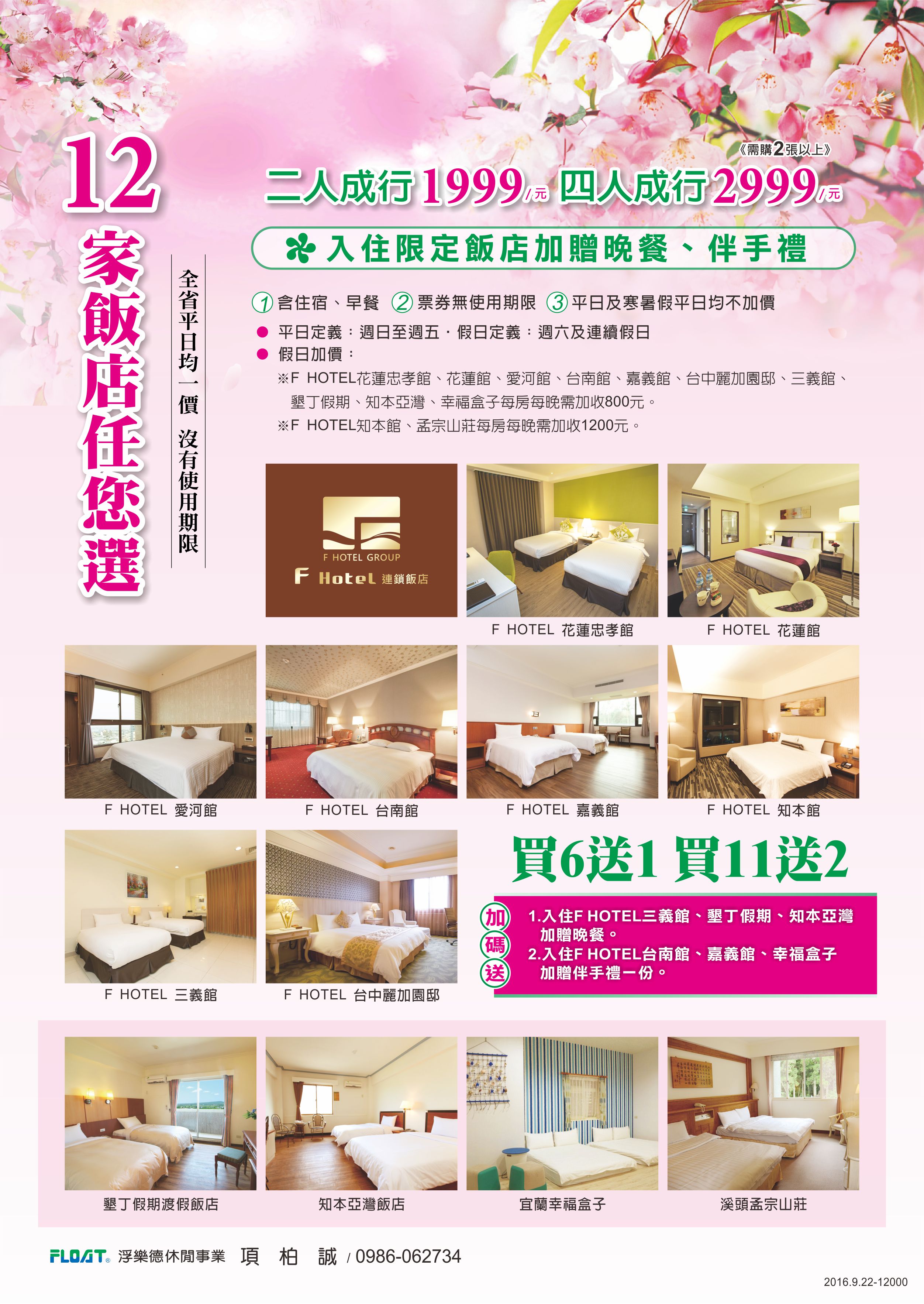 (2)5家飯店加贈晚餐(F 嘉義館, F 三義館, 花蓮亞士都飯店, 墾丁假期, 知本亞灣).
